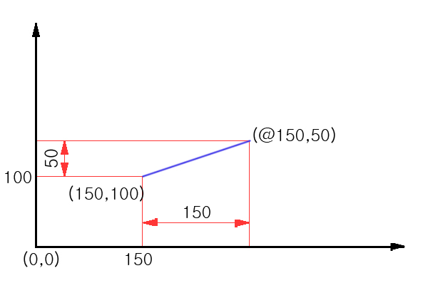 명령창에서 150,200 이라고 치고 두번재 점을 @150,50 이라고 입력하면 된다.