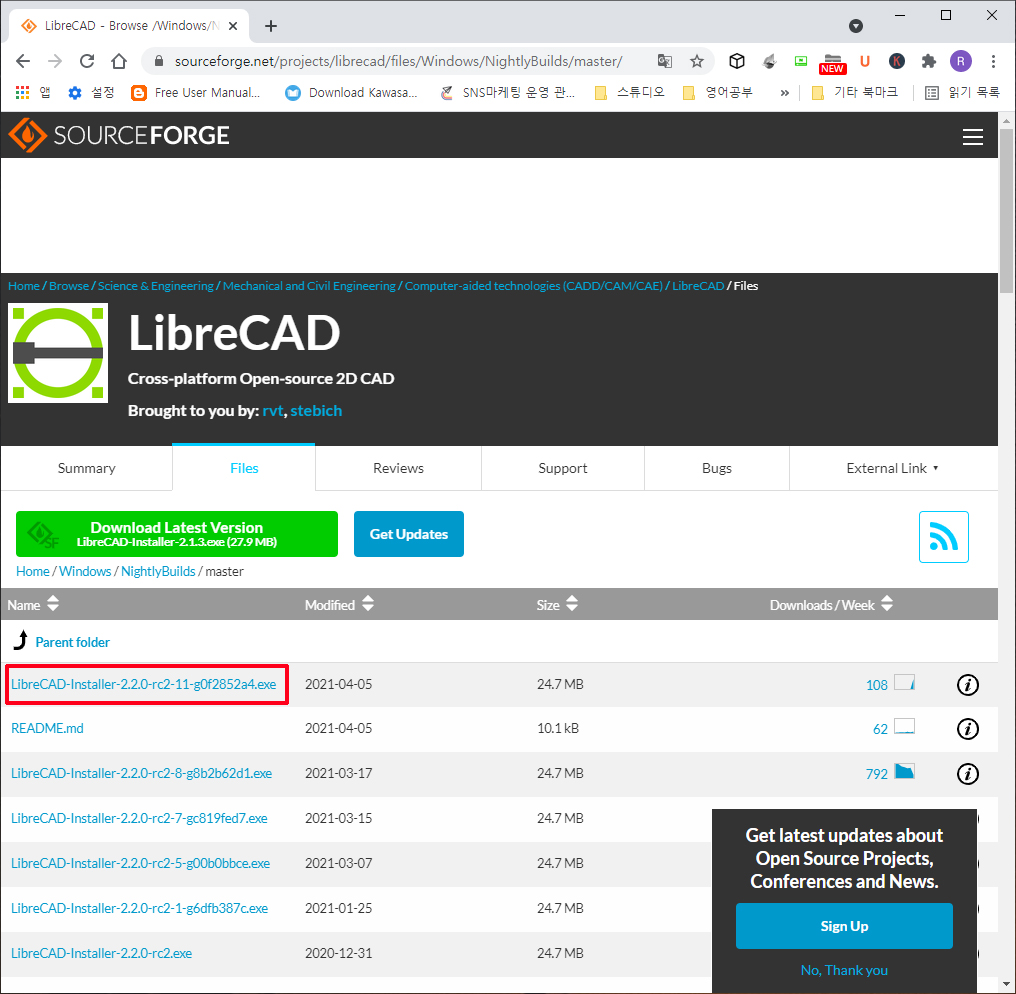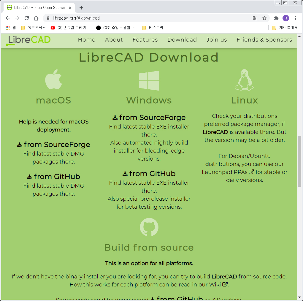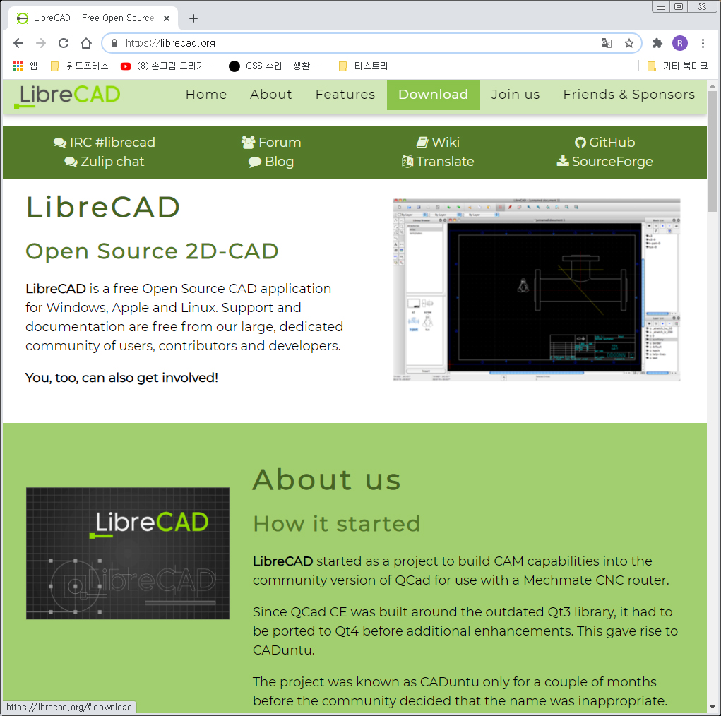 리브레 캐드는 아래 링크에서 다운로드가 가능하다