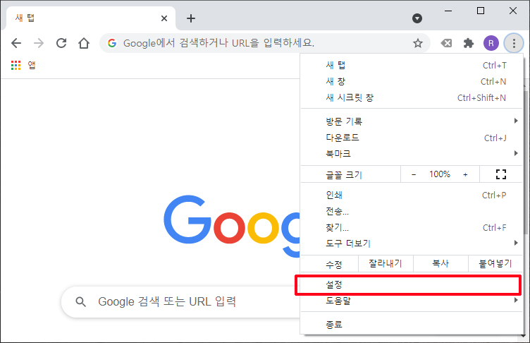 1. 크롬의 각종 메뉴는 우측 상단의 점 세개 아이콘을 클릭하면 나온다.