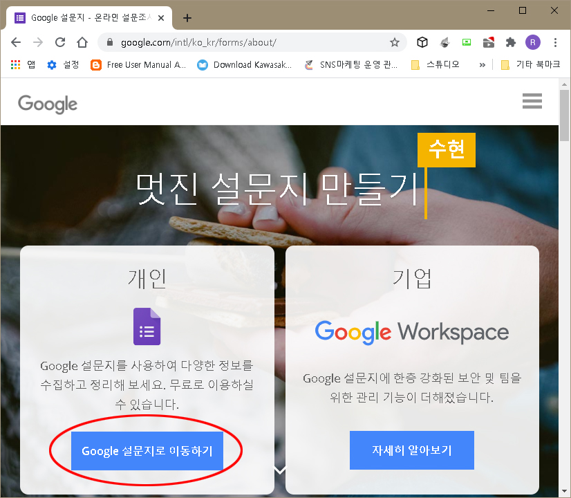 앞서 설명한 구글에서 제공되는 서비스 목록에 유독 설문지만 빠져있다.