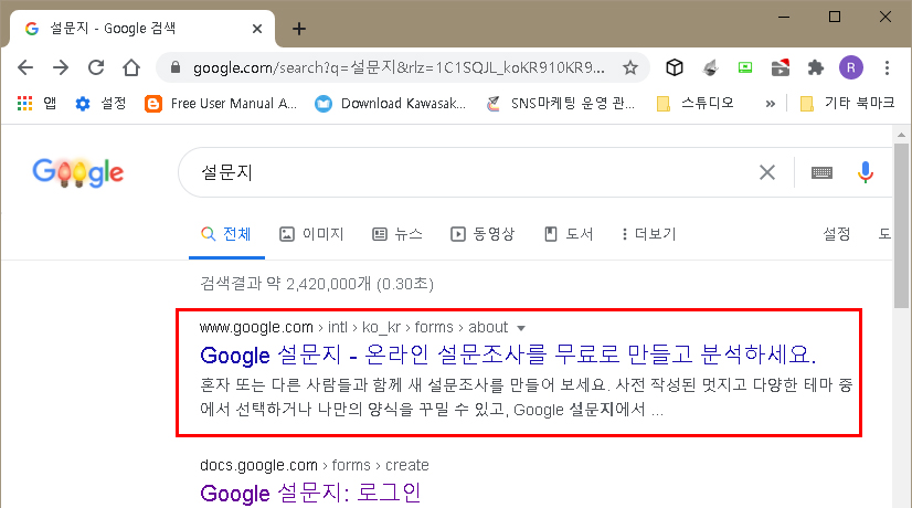 우선 구글에서 "설문지" 를 검색해보자